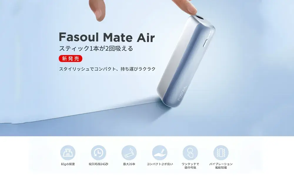 Fasoul成為IQOS ILUMA設備的一個“影子”或者“平替”(平價替代品),Fasoul Mate Air主機是 Fasoul Q1 升級款,專為台灣追求高品質與高性價比的用戶打造,憑 “一彈二抽” 設計帶來省錢新體驗,且外觀、性能全面升級,Fasoul二回機上市即受關注。